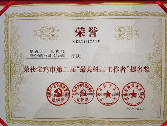 2023年5月,我公司憑借“堅持服務社會,在“智慧社區(qū)科技助力基層一線,為區(qū)域經(jīng)濟社區(qū)發(fā)展作出較大貢獻”和“捐贈數(shù)字防疫系統(tǒng)和服務,在疫情防控期間作出突出貢獻”,成功獲評寶雞市第二屆最美科技工作者團隊提名獎,獲得本屆提名獎的團隊共計20個。